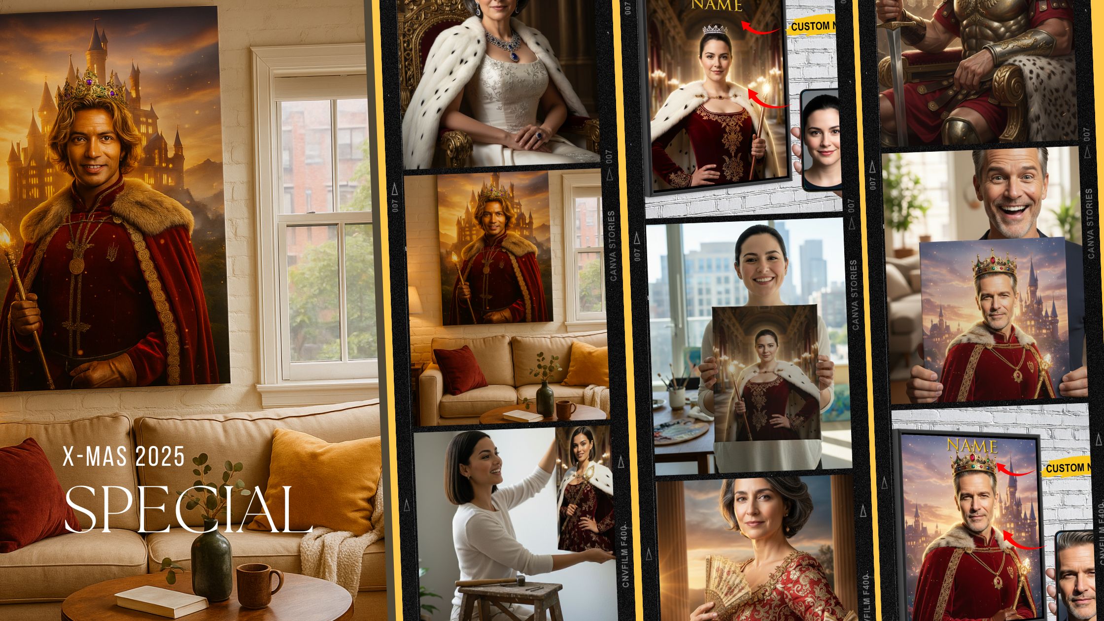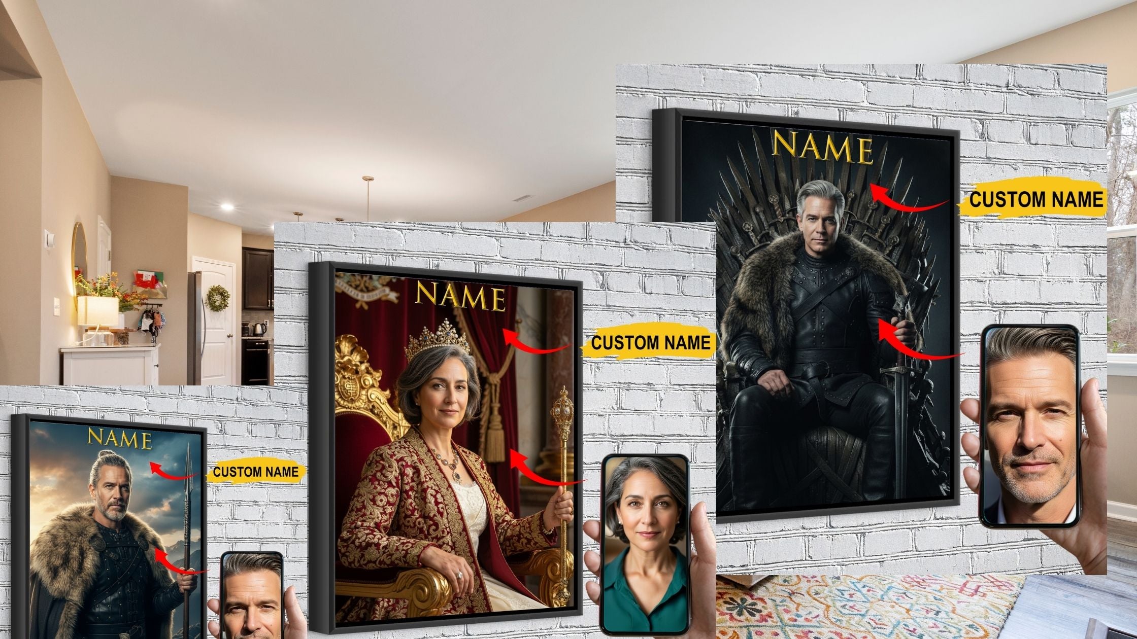 Just snap or choose a favorite photo of your loved ones, and watch the magic happen! Instantly preview their transformation into a king or queen.